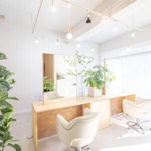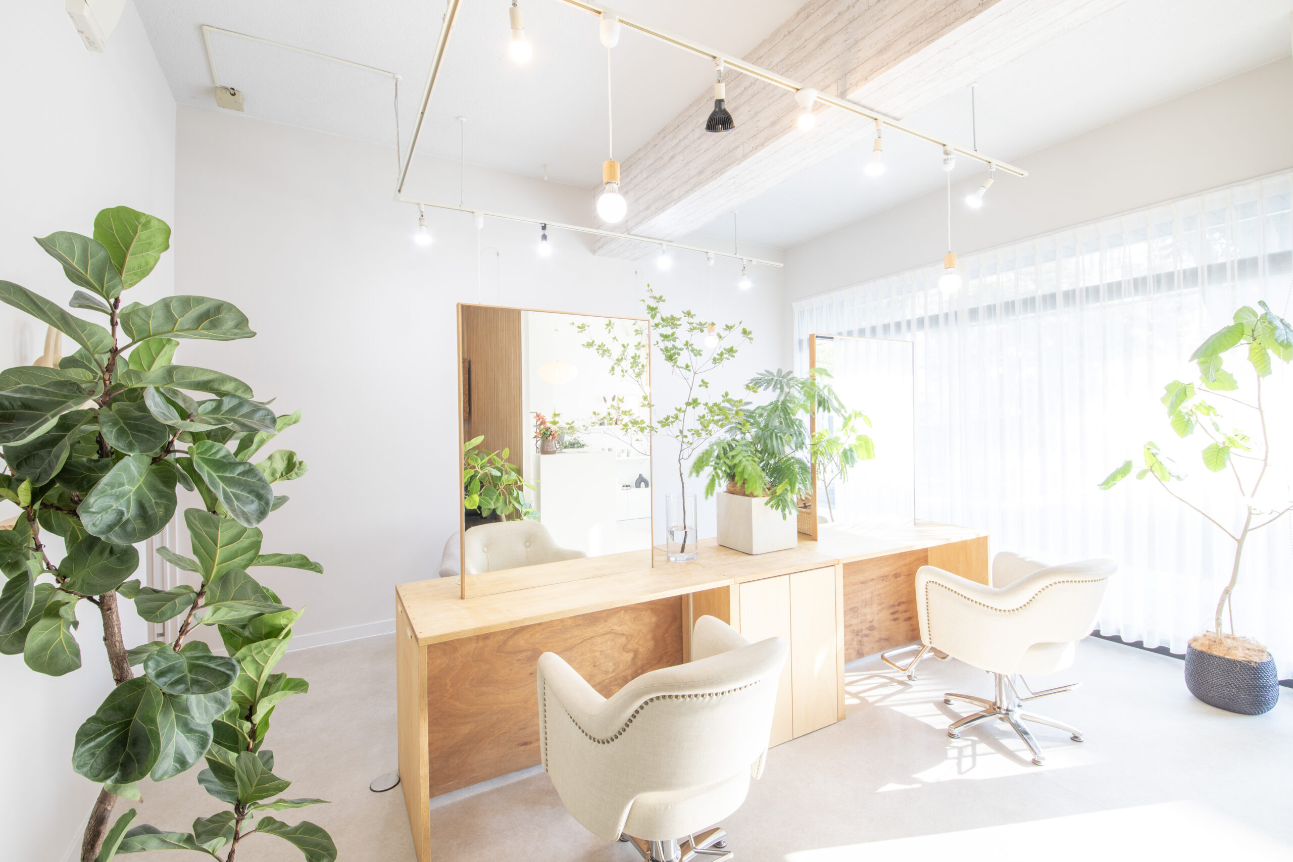 浜松・佐鳴台店 日常を離れて、ふっと深呼吸できる場所。白を基調とした洗練された空間に、やさしいグリーンが映える店内は、シンプルなのにどこか心地いい雰囲気。自然光が差し込む席で、お一人おひとりに向き合いながら、丁寧なおもてなしと寄り添う接客を心がけています。髪だけでなく、気持ちまで整うようなひとときをご提供します。 ▶ メニュー・ご予約・スタッフ紹介はこちら(Hot Pepperページへ)